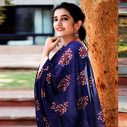 Blue Pure Bagru Block Printed Soft Cotton Saree-UNM82683
