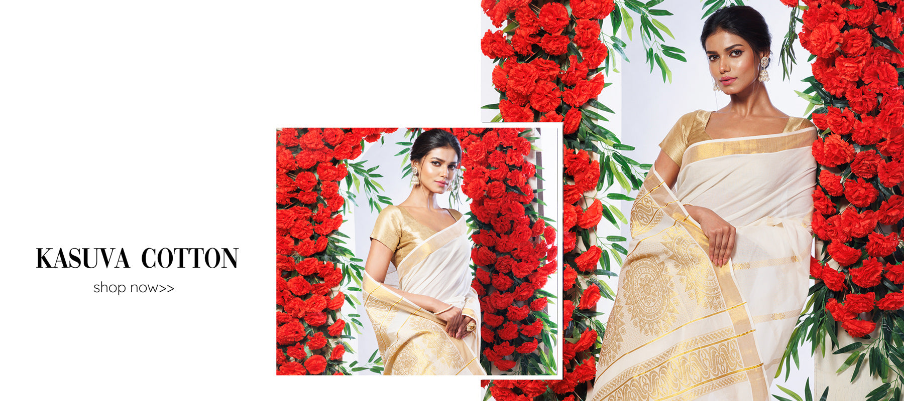 Ivory Pure Kerala Kasavu Cotton Saree-UNM82366