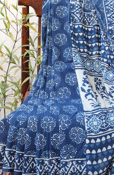 Blue Cotton Dabu Printed Kurta-PKK1451
